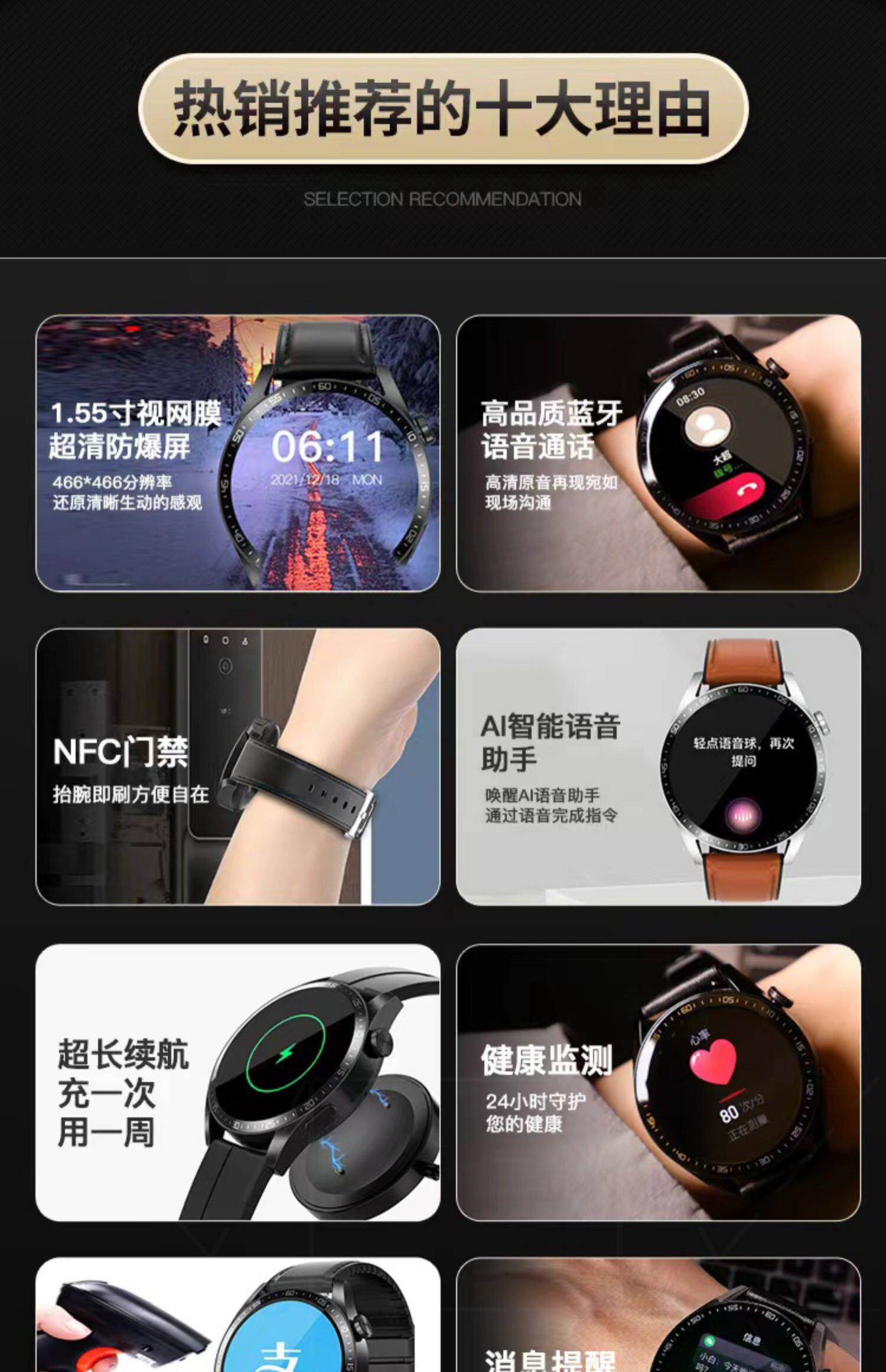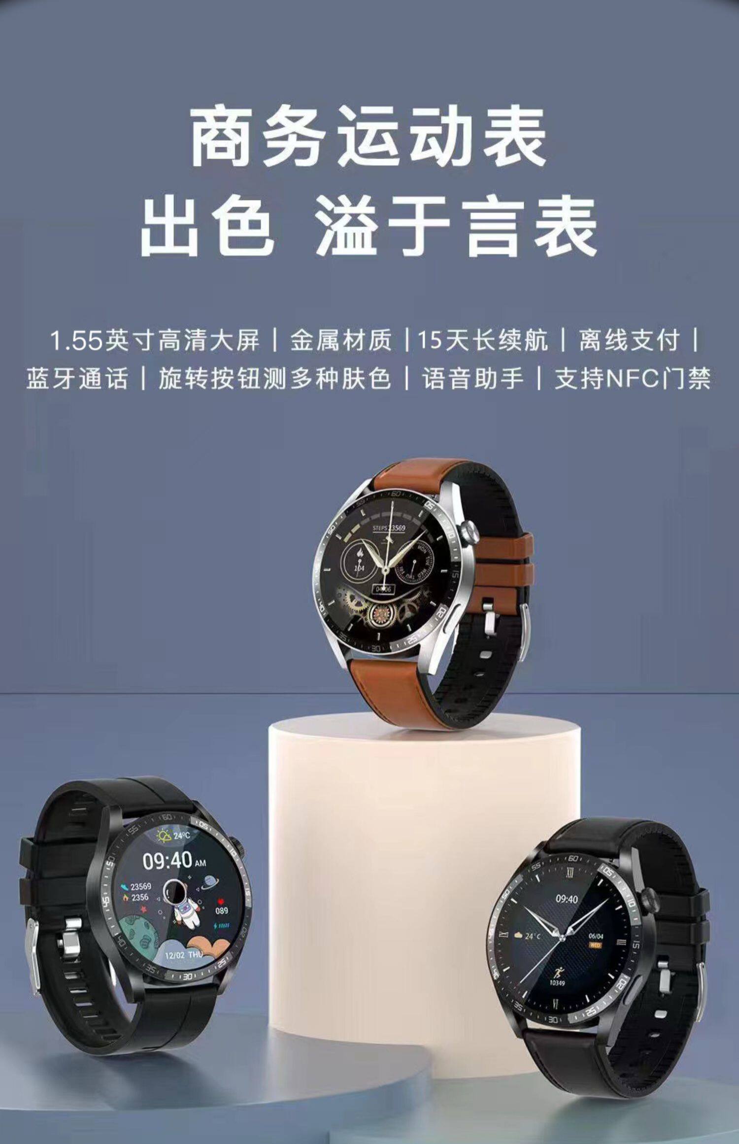 华为手机通用智能手表GT3苹果男女蓝牙可接打电话watch3运动NFC太空人华强北音乐测血压心率手环