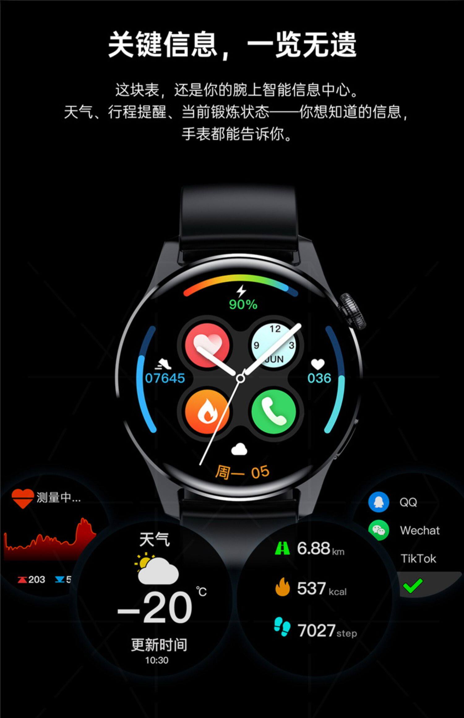 / 华为手机通用智能手表GT3苹果男女蓝牙可接打电话watch3运动NFC太空人华强北音乐测血压心率手环