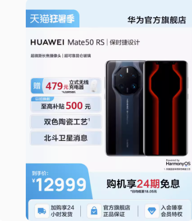 【新品】HUAWEI/华为Mate50 RS保时捷设计超微距长焦摄像头鸿蒙拍照摄影游戏商务高端智能手机 数量