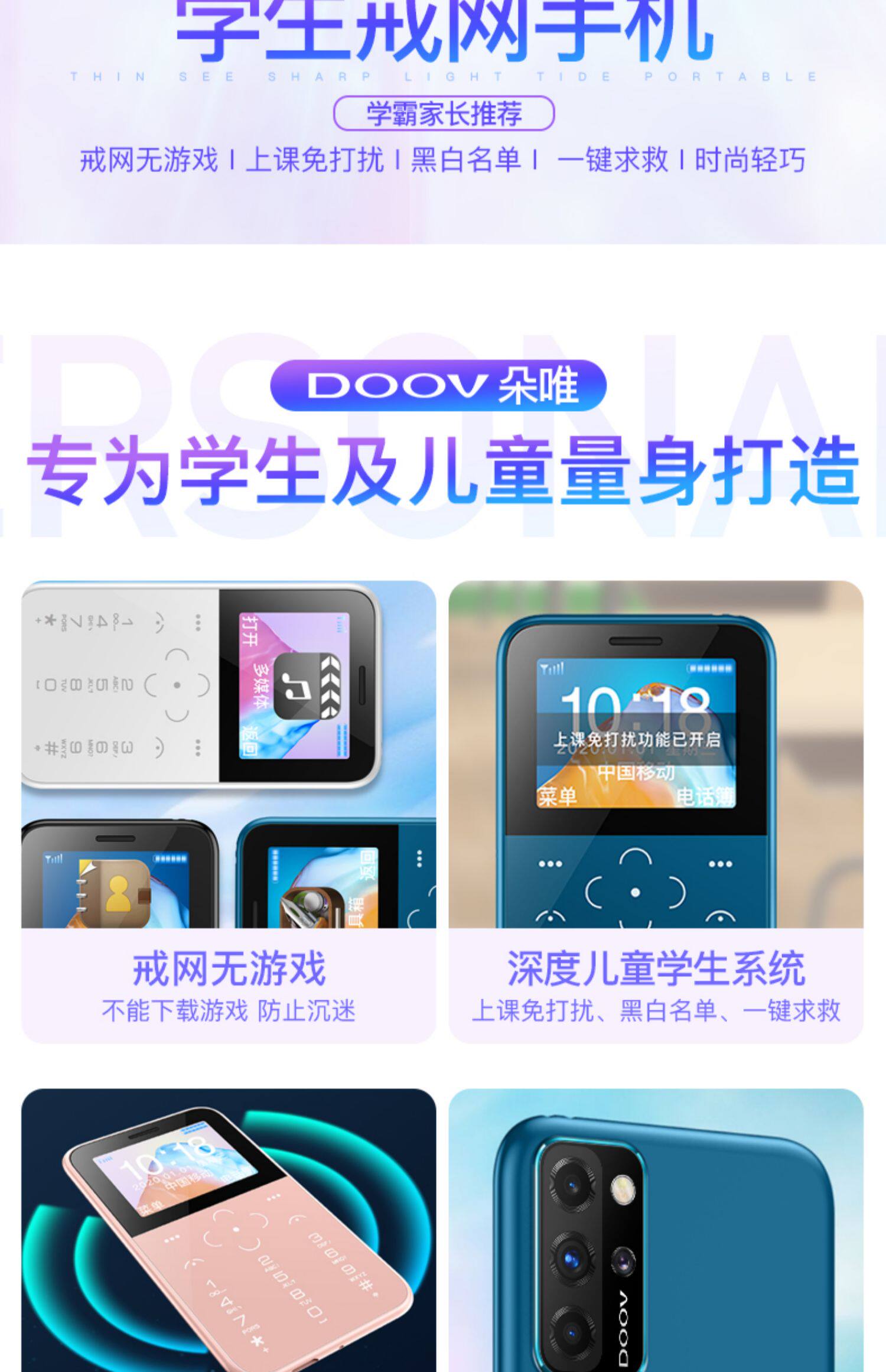 / 朵唯V9迷你学生手机戒网瘾专用非智能男女备用超薄超小全网通儿童初中生高中生老人机只可以打电话卡片小手机