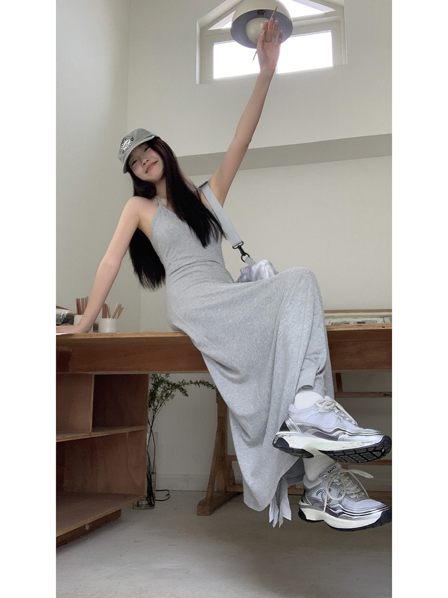 红人馆挂脖连衣裙女夏季新款黑色高级垂坠感长裙气质超火吊带裙子 数量