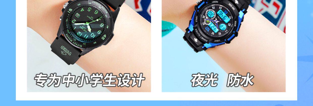 迪士尼手表儿童男生男童防水小学生初高中男孩只看时间电子表指针 数量