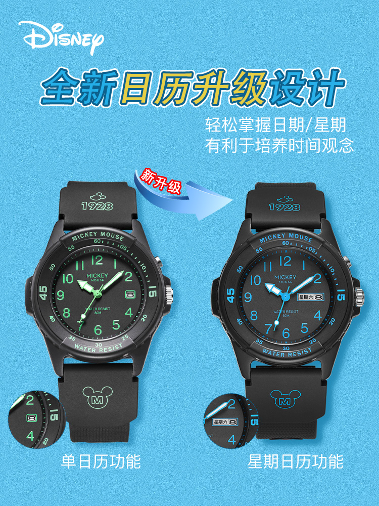 / 迪士尼手表儿童男生男童防水小学生初高中男孩只看时间电子表指针