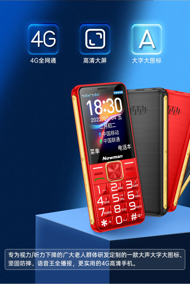 / 4G全网通纽曼K50正品老年手机超长待机老人机大屏幕大字大声音男女士电信版学生专用智能按键手机