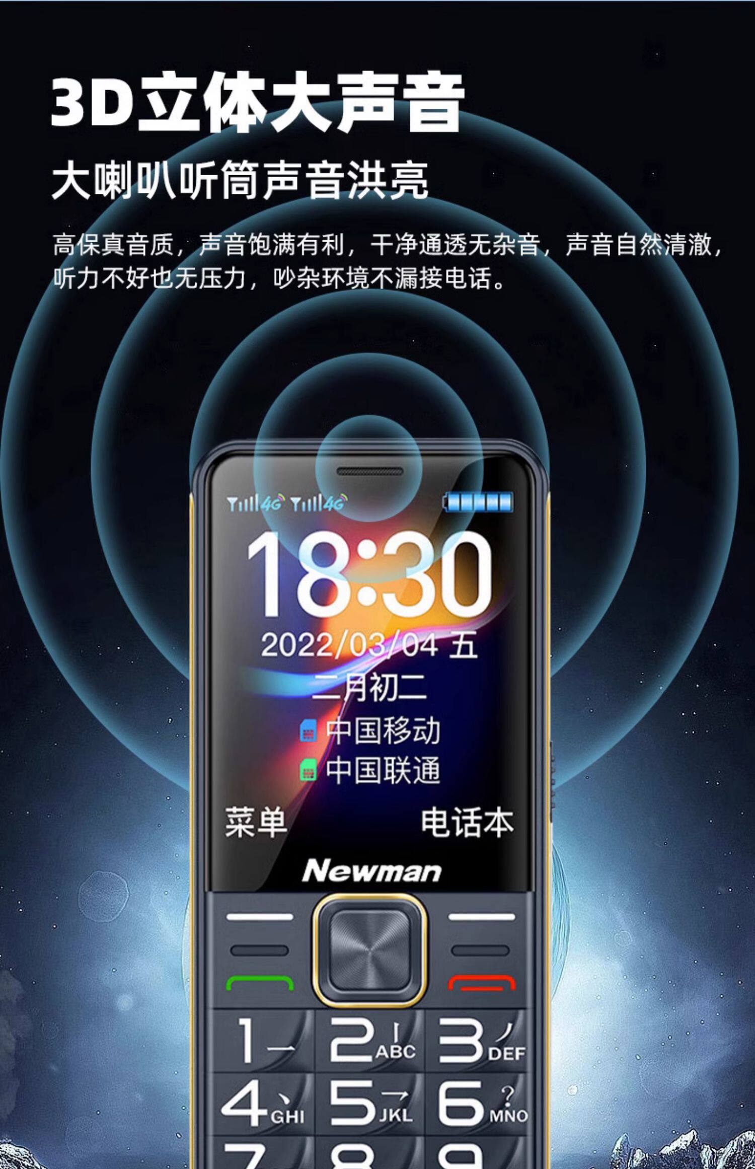 4G全网通纽曼K50正品老年手机超长待机老人机大屏幕大字大声音男女士电信版学生专用智能按键手机