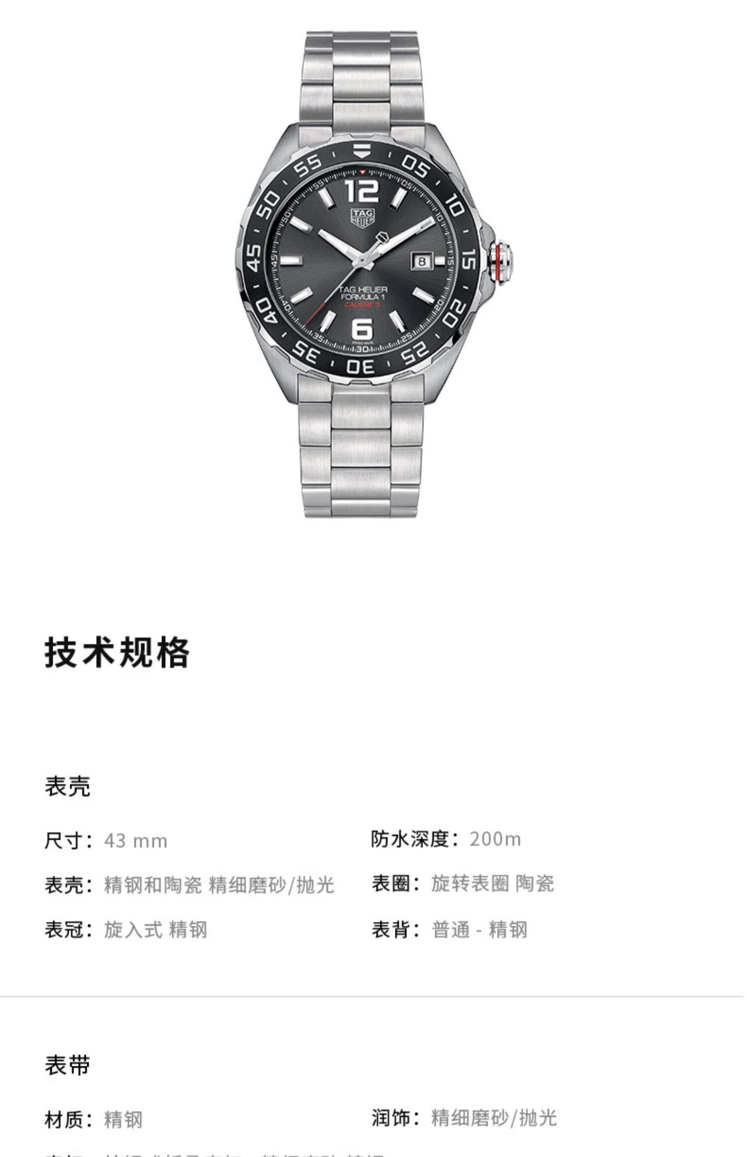 TAGHeuer手表泰格豪雅手表F1瑞士全自动机械男士腕表赛车运动烟灰 数量